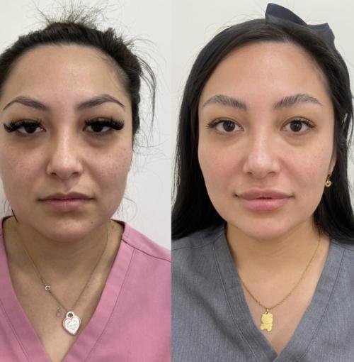 Reducción visible de las bolsas e hinchazón bajo los ojos.